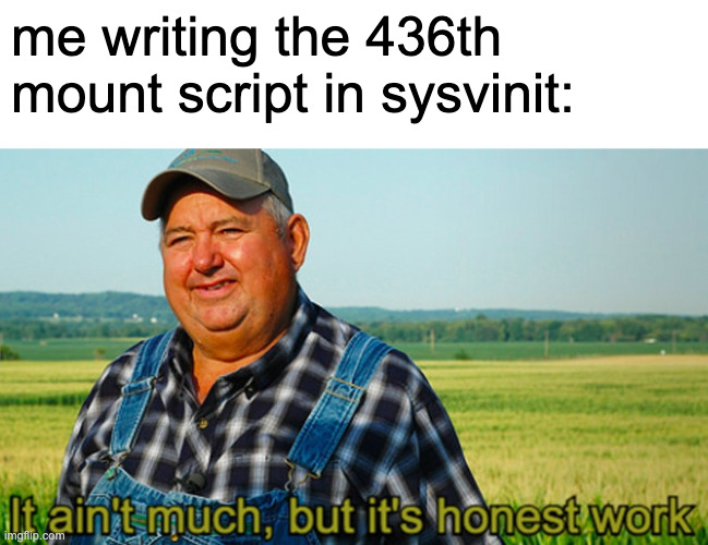 For sysvinit systems, there’s less support. There’s read-only-rootfs-hook.sh init script that gets installed when a read-only rootfs is enabled. This script mounts /var/volatile/lib to /var/lib, first attempting overlayfs and then bind mount, but that’s all. For the rest of the mounts, you’ll have to figure out the mounting yourself. For persistent mounts, you could use fstab. For volatile mounts, you could copy the read-only-rootfs-hook.sh, and modify it with different parameters for the different mounts. Or generalise it a bit, create a script of it, and then create init scripts calling it. Still, with sysvinit, you’ll most likely have to do a bit more manual work.